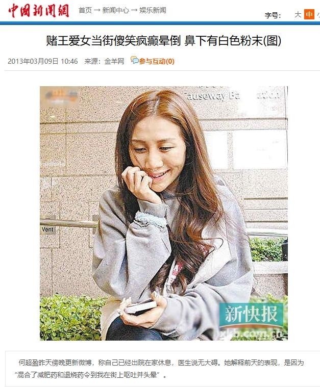 部分参考资料赌王爱女当街傻笑疯癫晕倒 鼻下有白色粉末——中国新闻网何超盈带7岁女儿出席TVB活动母女俩坐第一排一场活动下来捐款百万——网易新闻